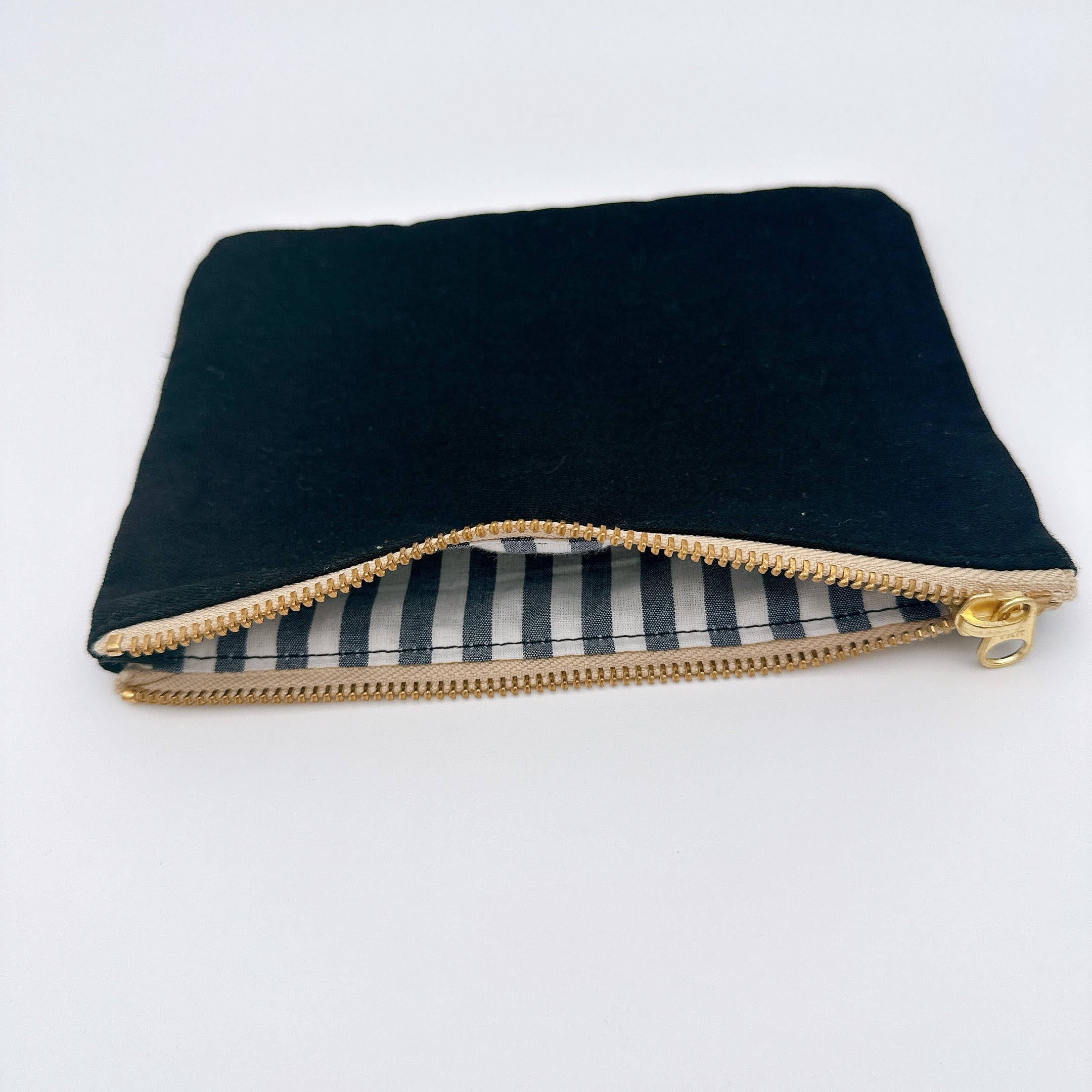 ポーチ(大)黒 内布(シマシマ柄)